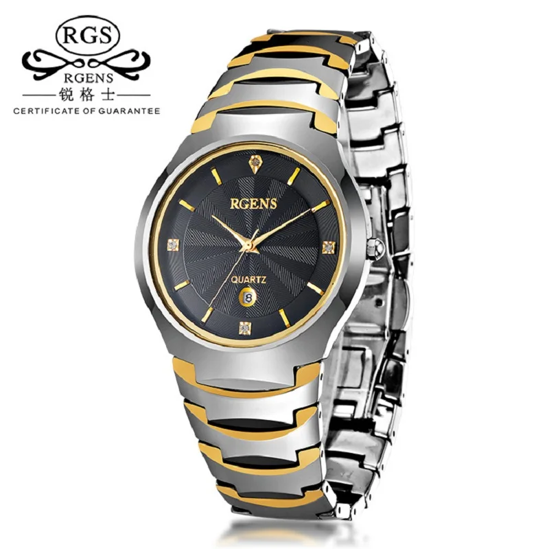 Kopen Goedkoop Luxe goud mannelijke horloges waterdicht zakelijke mannen horloges wolfraam staal quartz kalender man klokken RGENS merk offici euml;le Prijs