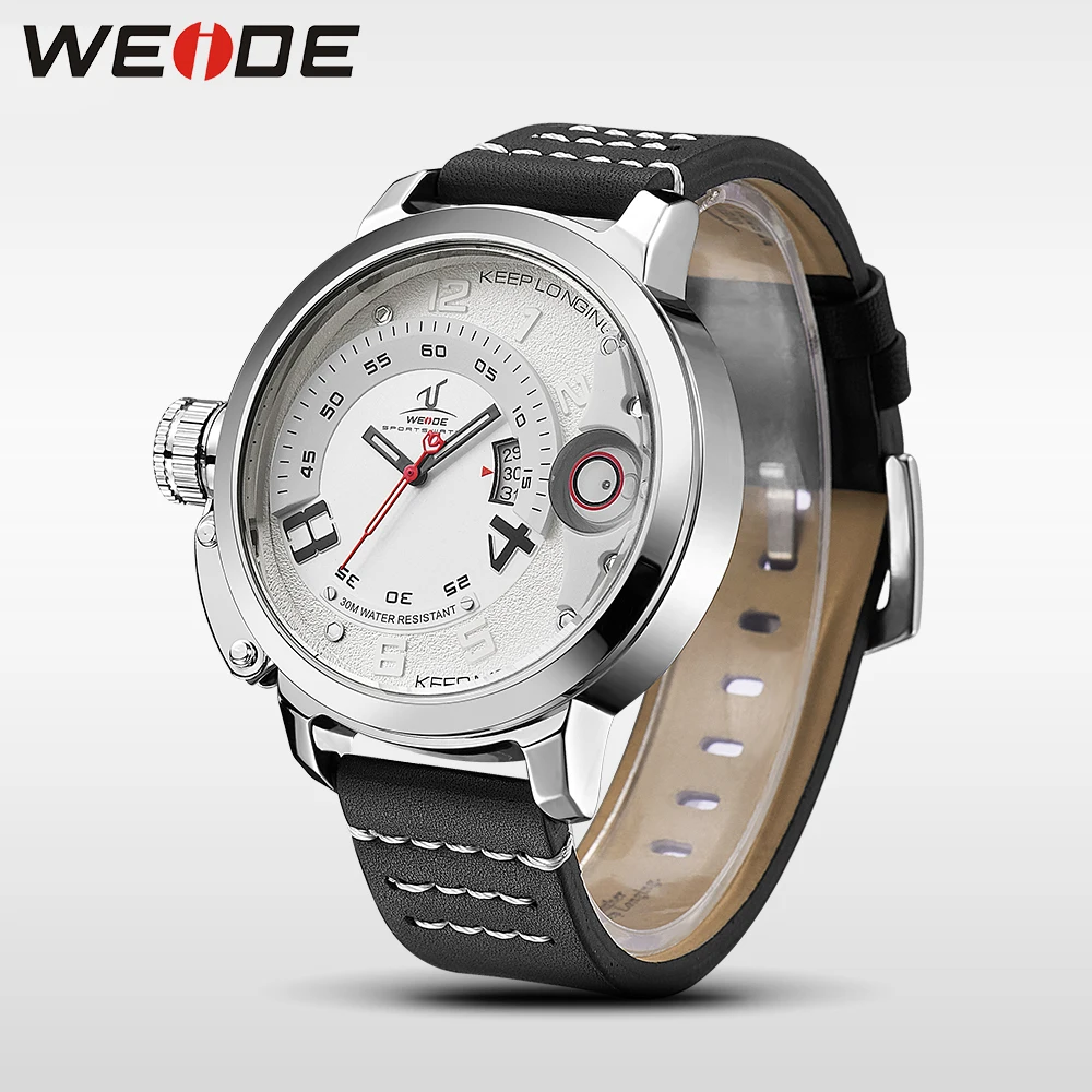 Goede Koop WEIDE mannen horloges merk luxe mannen quartz sport polshorloge casual echt waterbestendig analoog lederen witte horloge man klok Goedkoop
