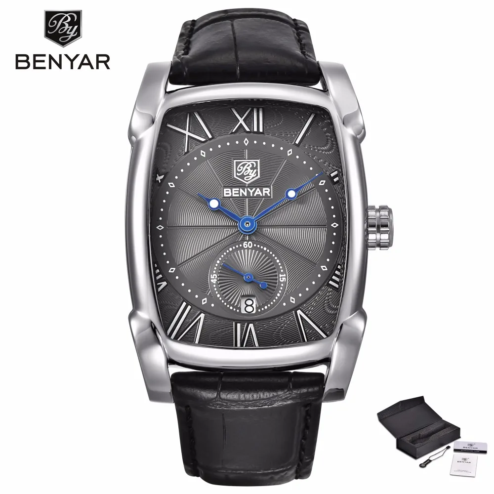 Beranda Goede Koop BENYAR Heren Horloges Top Brand Luxe Casual Lederen Band