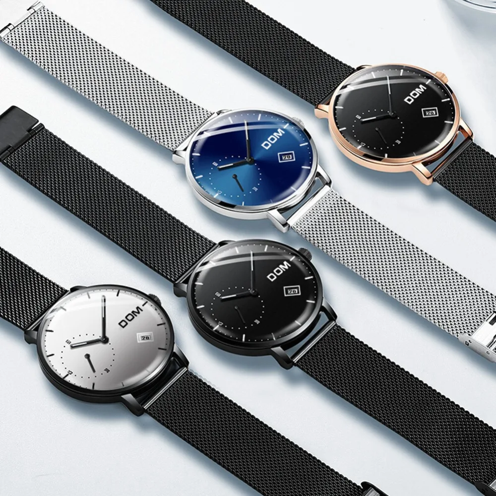 Kopen Goedkoop DOM Luxe Jurk Waterbestendig Zwart Roestvrij Staal Lederen Ronde Lichtgevende Mannen Horloge 2018 Quartz Horloges relogio masculino Online
