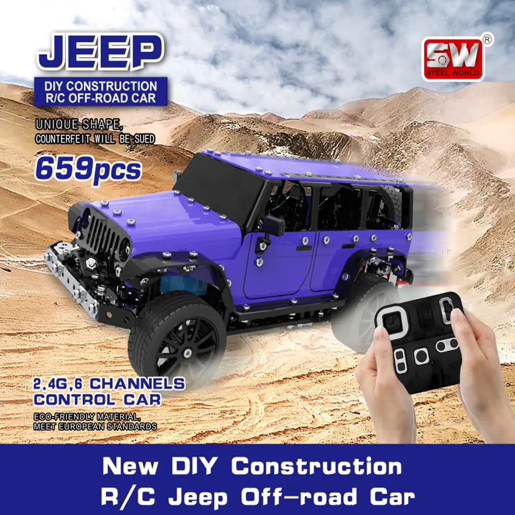 Goede Koop Staal Wereld 2.4 ghz 6 Kanalen USB Opladen Bouwsteen DIY Vergadering Bouw Afstandsbediening Jeep Off road Speelgoed RC Cars Goedkoop