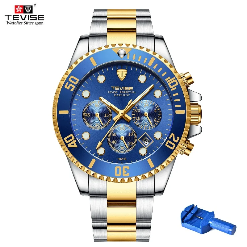 Kopen Goedkoop Quartz Horloges TEVISE Mannen Horloge T823S Week Datum Lichtgevende Horloge Mens Roterende Ring Klok Mannelijke Waterdicht Met Fix Tool Prijs