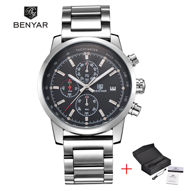 Beste Kopen BENYAR Mode Chronograaf Sport Heren Horloges Topmerk Luxe Militaire Rvs Band Quartz Horloge Relogio Masculino Goedkoop