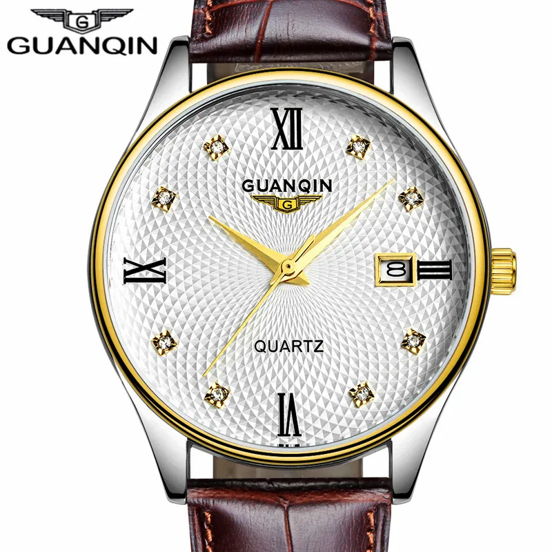 Beste Koop Saat erkekler GUANQIN Mannen Merk Horloge Quartz Lederen Band Waterdicht Mannen Horloges Fashion Casual Horloges Beste Geschenken Goedkoop