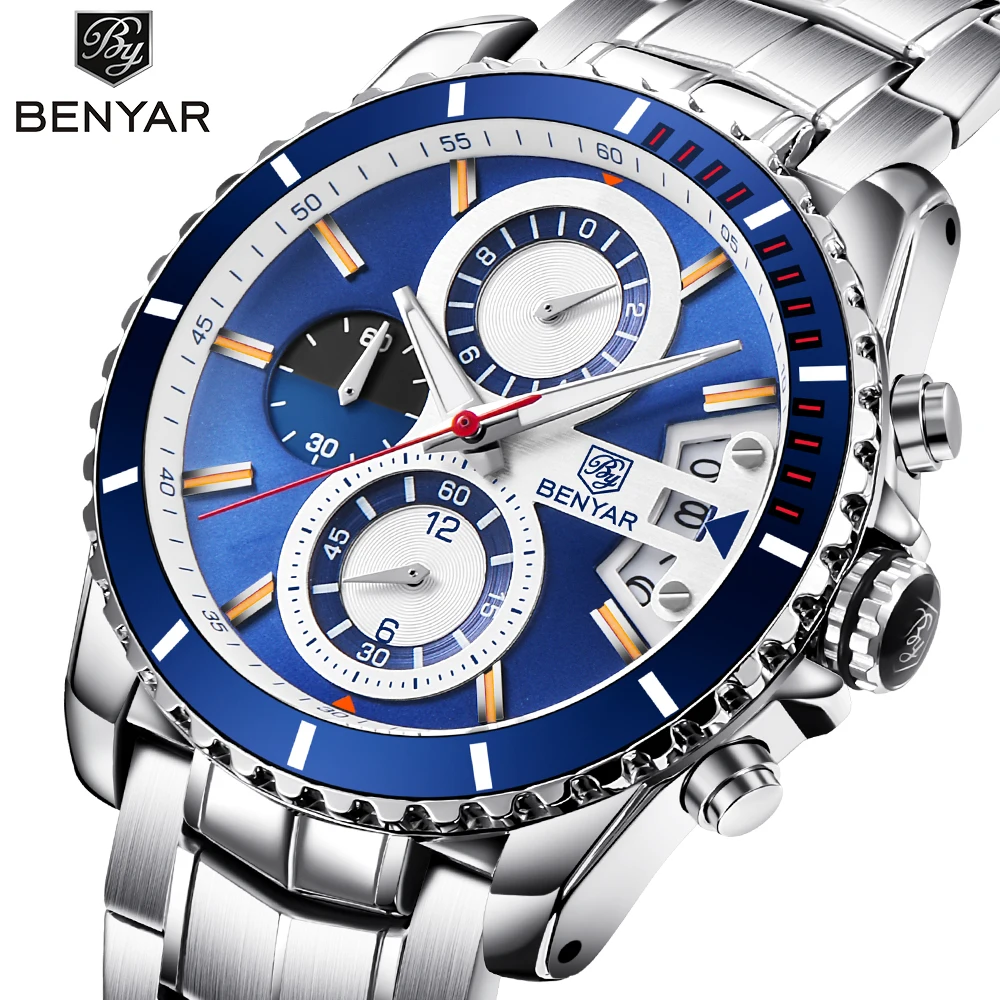 Kopen Goedkoop Nieuwe Merk BENYAR Luxe Chronograaf Sport Heren Horloges Mode Militaire Waterdicht Quartz Horloge Relogio Masculino Dropshipping Prijs