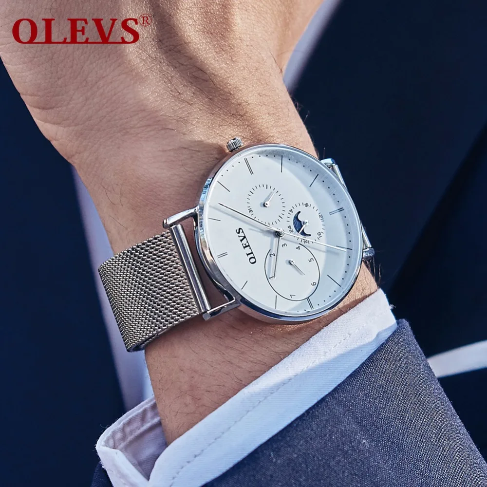 Kopen Goedkoop OLEVS Grote Wijzerplaat Horloges Mannen Moon Phase
