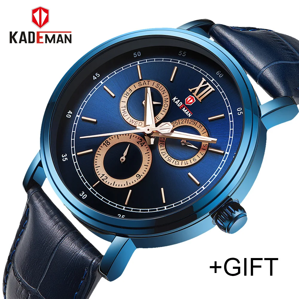 Goede Kopen KADEMAN Mannen Fashion Casual Horloges Top Luxe Merk mannen Quartz 24 Uur Datum Klok Man Lederen Waterdichte Sport Pols horloge Goedkoop