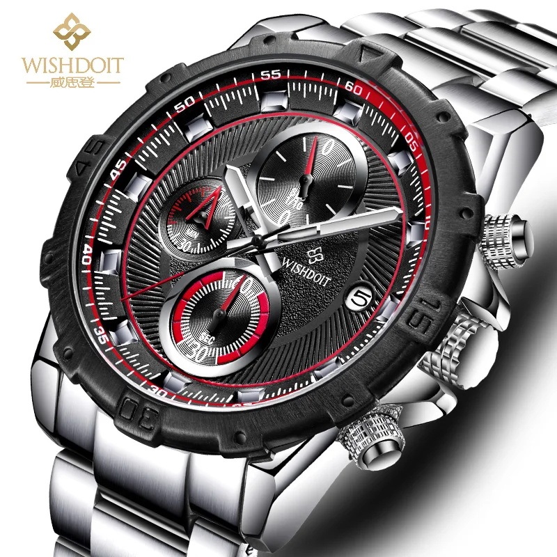 Kopen Goedkoop Mannen Horloges Skelet Militaire WISHDOIT Chronograaf Quartz Man Grote Wijzerplaat rvs Sport Horloge Leger Klok Relogio Masculino Prijs