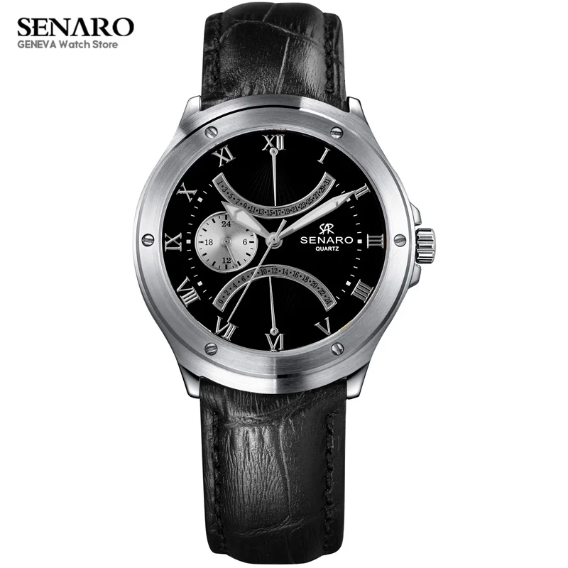 Beste Kopen SENARO Heren Horloges Luxe 39mm Rundleer 316L Rvs Quart Horloge Mode Mannelijke Horloge zegarek relojes S37 Goedkoop