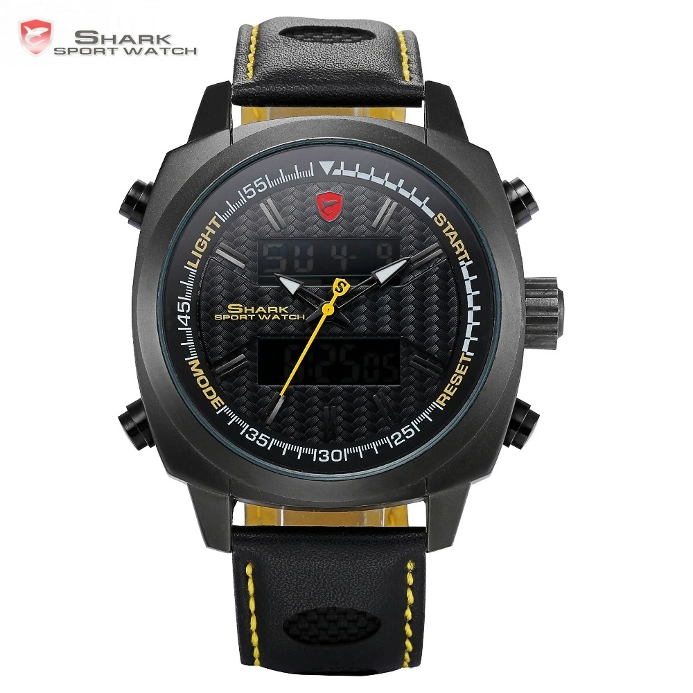 Kopen Goedkoop Silvertip Shark Sport Horloges Merk Volledige Zwarte Digitale Backlight Datum Alarm Chronograph Quartz Lederen Band Heren Horloges SH494 Online
