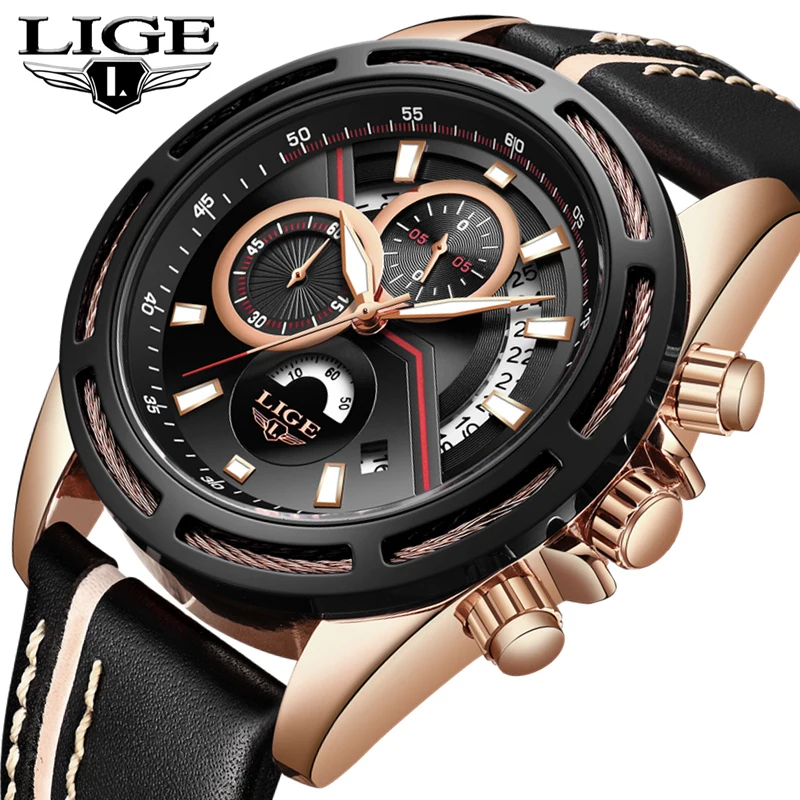 Kopen Goedkoop LUIK Mode Gouden Horloge Mannen Sport Quartz Klok Lederen Heren Horloges Top Brand Luxe Waterdicht Business Watch Relogio Masculino Prijs
