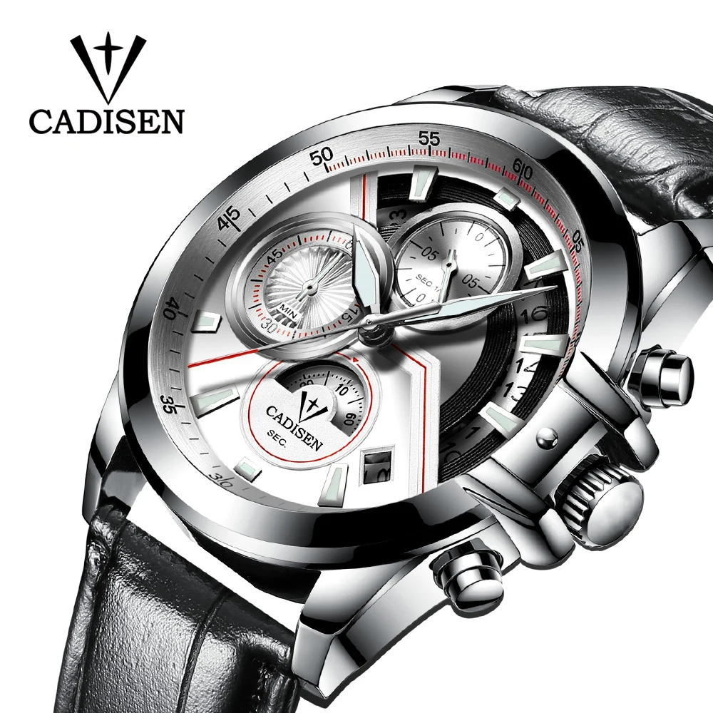 Kopen Goedkoop CADISEN Heren Horloges Luxe Merk Mode Leger Sport Toevallige Waterdichte Mannen Lederen band Quartz Rvs Mans Horloge Prijs